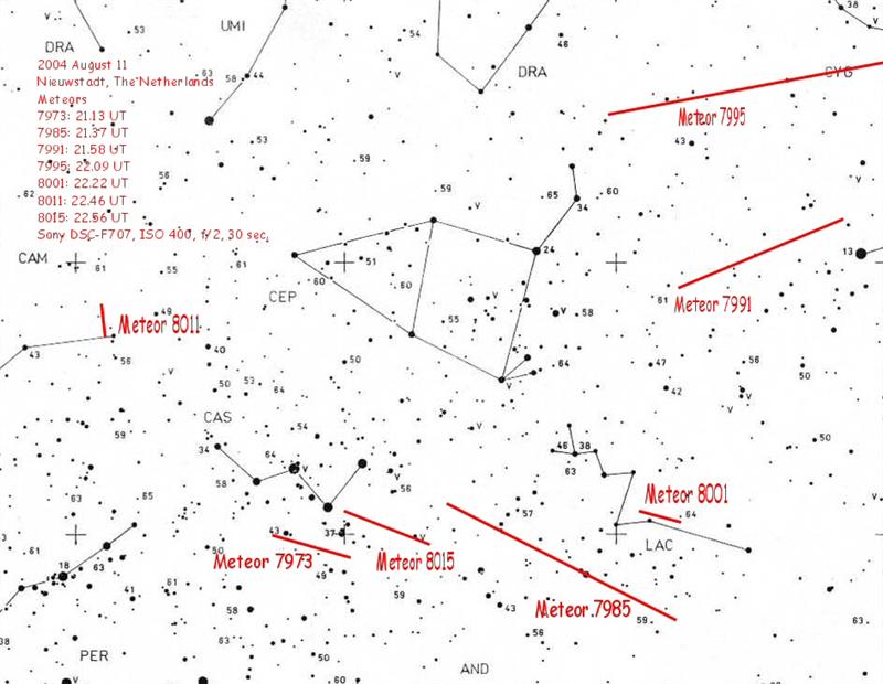 volgende meteoren een Perseïde 7973, 7991 en 8011. De meteoren met